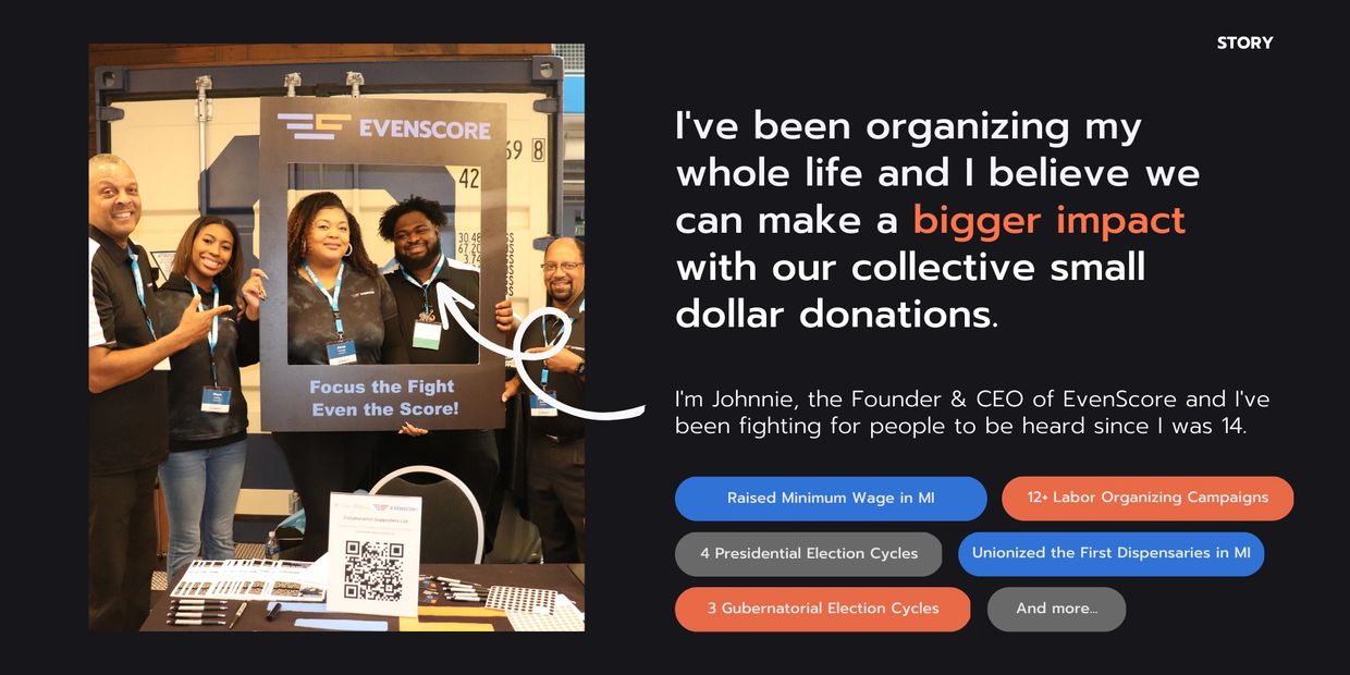 EvenScore is an impact-focused donation platform that provides a safe and trusted space for small-dollar donors to support the causes and candidates most important to them and the communities they call home. With the EvenScore app, users build a personalized contribution dashboard that allows them to track all of their donations while providing real-time updates on the campaigns they follow. What makes the platform particularly unique are its social and interactive components which serve as empowerment tools so that anyone, anywhere can mobilize their friends, family and peers in support of critical campaigns that need funding.